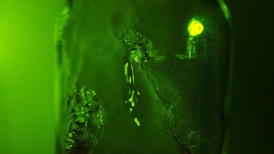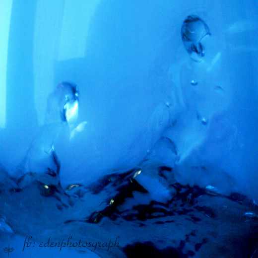 Ces "Faces Cachées" forment des personnages sculptés par des jeux de lumières et de mouvements dans l'eau